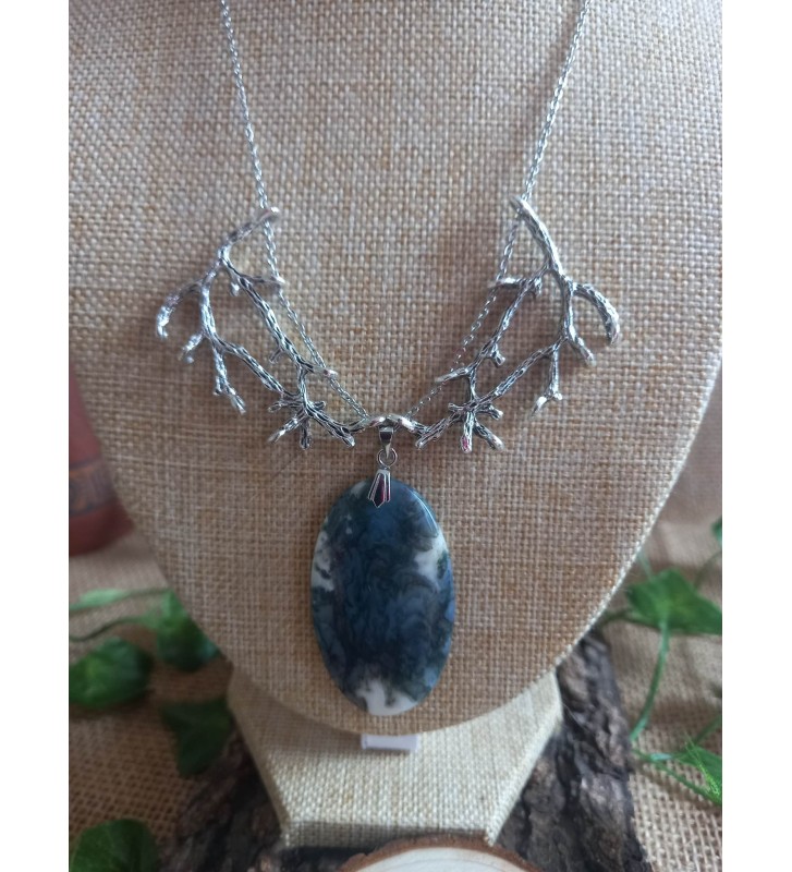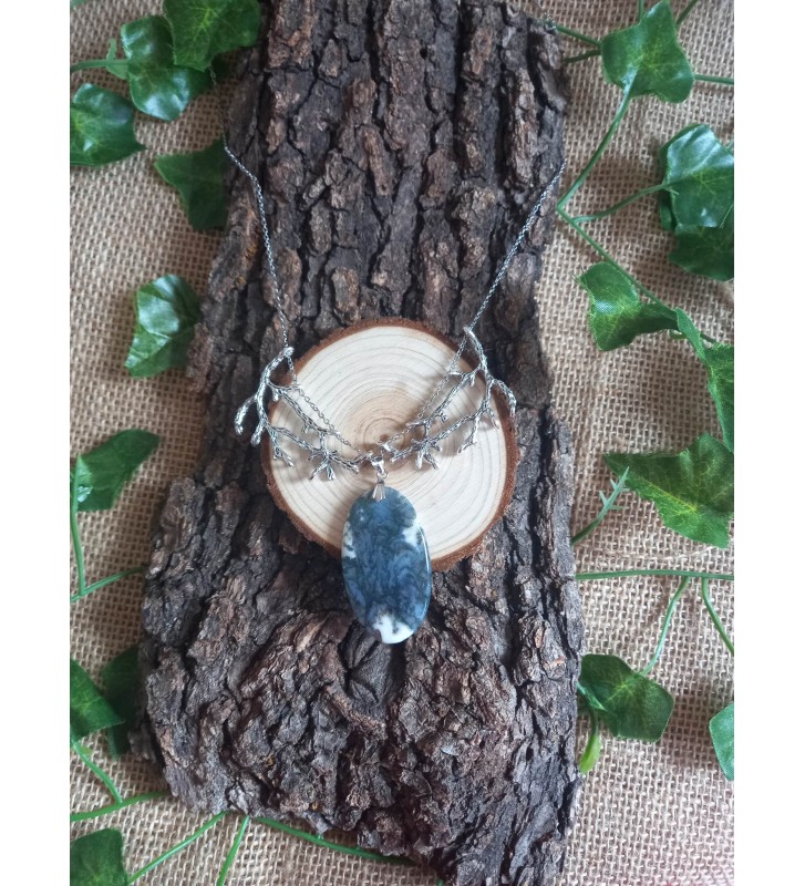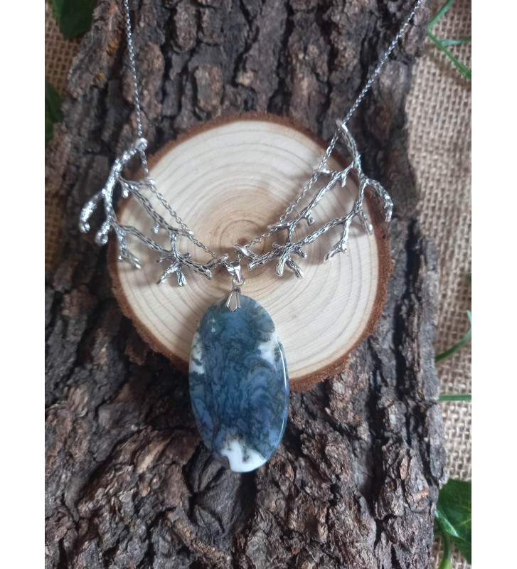 L'agate dendritique, plus connue sous le nom d'agate mousse, est une variété d'agate, qui a la différence des comparses, n'a pas ses couches de minéraux superposés en linges ou en circonvolution. Au contraire, ils sont désorganisé et se superposent de manière à créer des motifs d'arbre ou de mousse, ce qui lui donnera son nom.