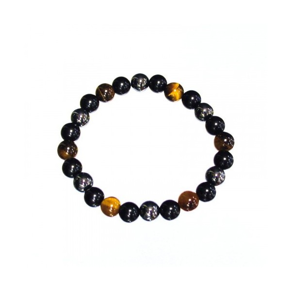 Bracelet de protection avec œil de tigre, hématite et obsidienne noire.